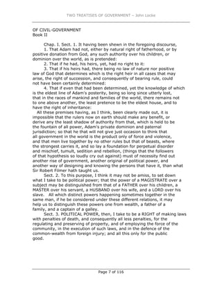 Second Treatise of Government Summary and Analysis of Chapter IX. The First Treatise is a criticism of Robert Filmers Patriarcha which argues in support of the divine. Power and Absolute Monarchies.